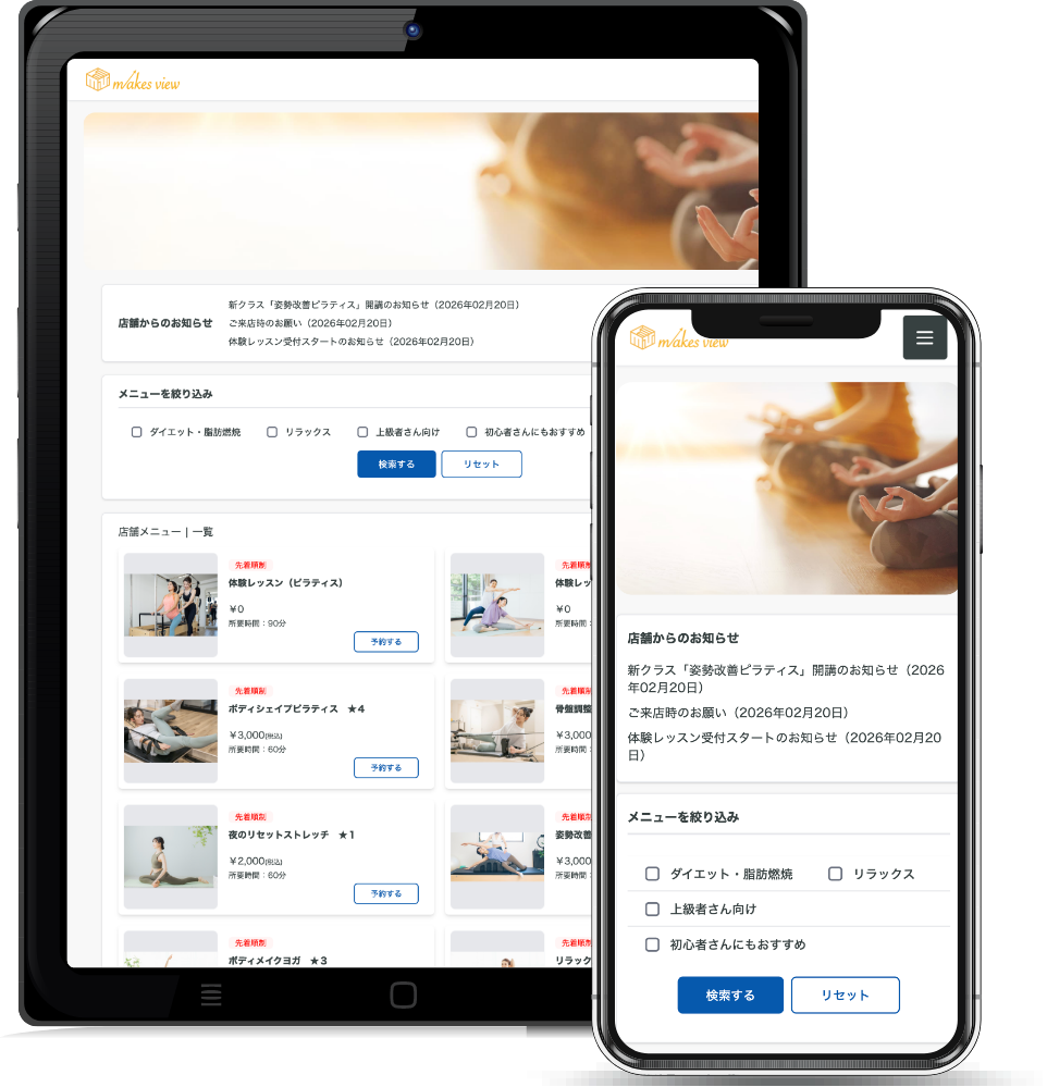 予約メニュー・営業時間・スタッフ設定などは自由にカスタマイズできるため、エステ・教室・ジム・イベント運営など幅広い業態に導入されています。